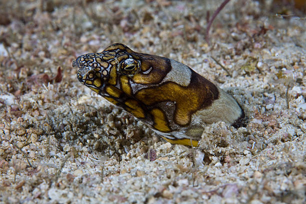 방울뱀장어는 야행성 습성을 지니며, 낮에는 바위 틈이나 모래 속에 숨어 휴식합니다. 주로 작은 어류, 갑각류, 곤충, 유기물 등을 먹이로 섭취하며, 먹이를 사냥할 때는 민첩한 움직임과 예민한 후각을 활용합니다.